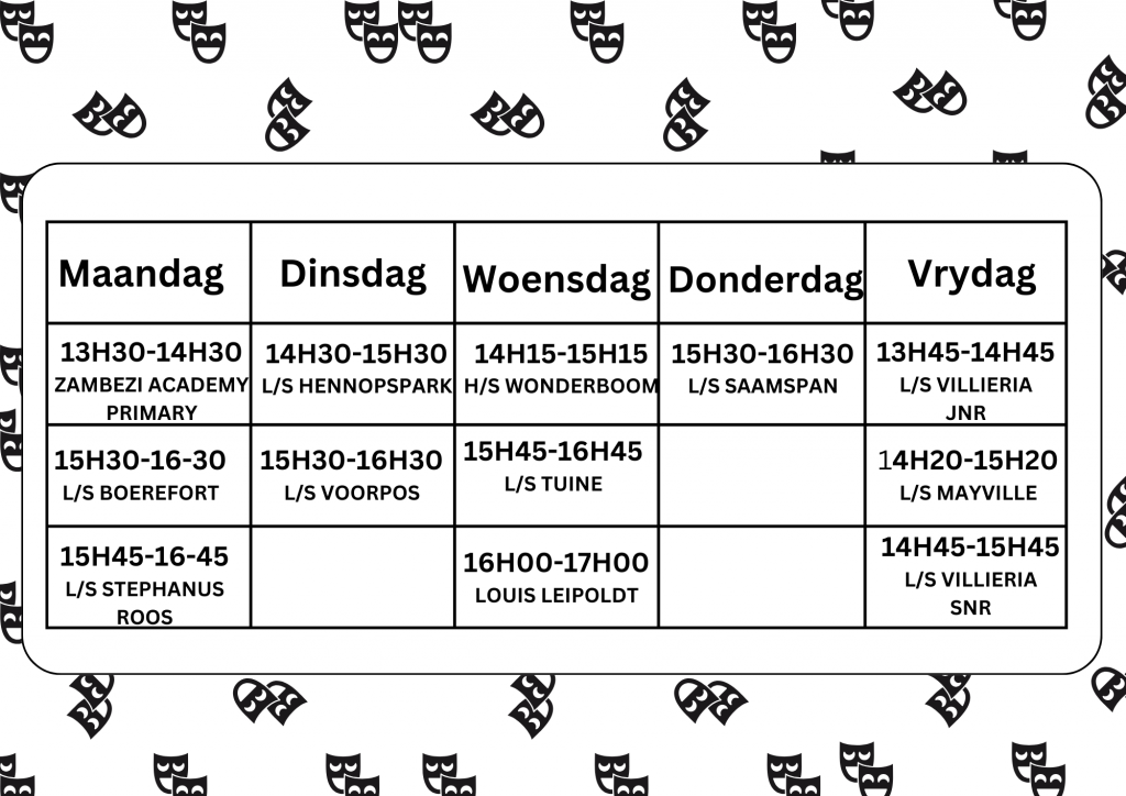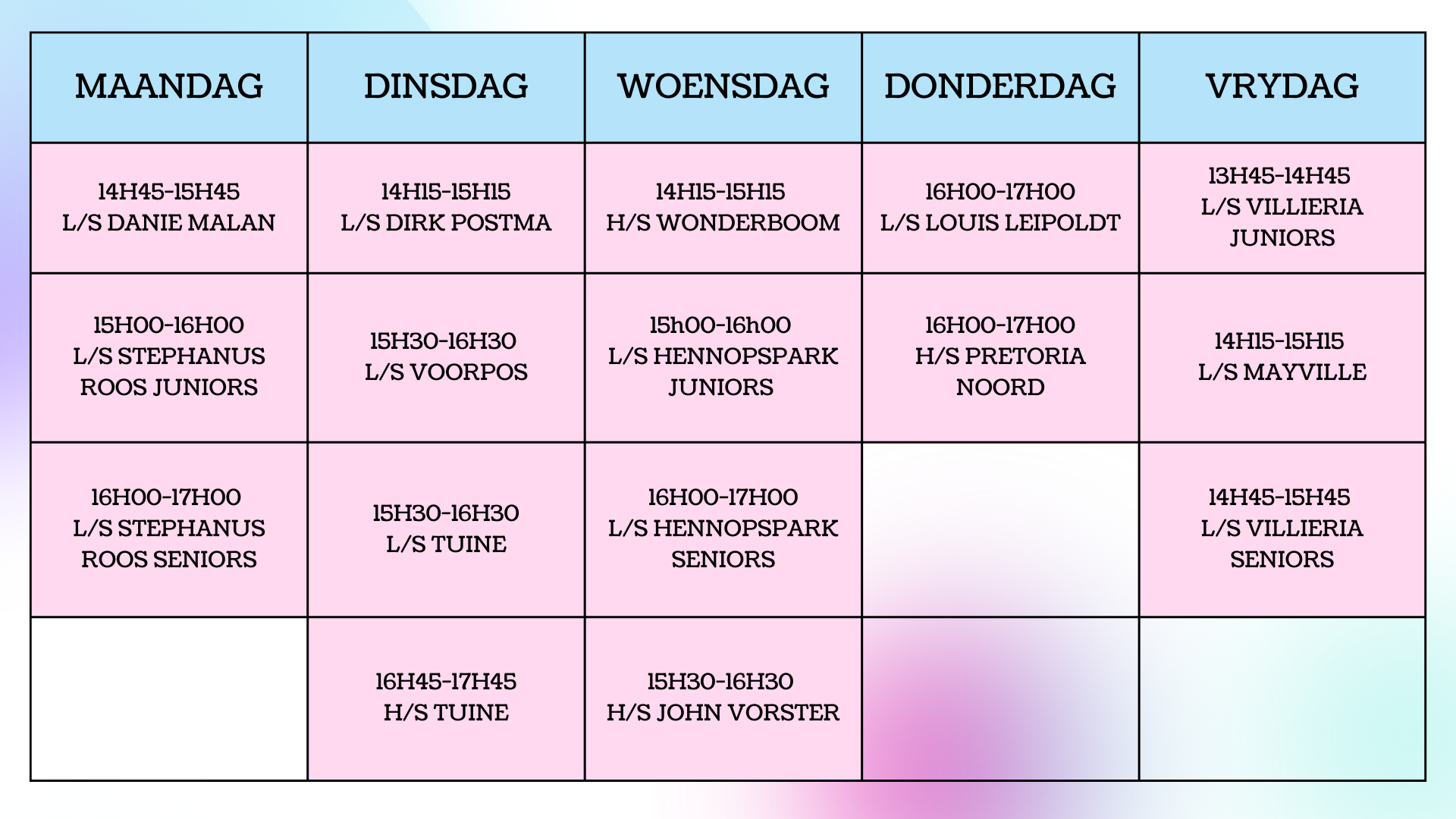 Ons weeklikse klasse word by die volgende skole in Pretoria en Centurion aangebied.